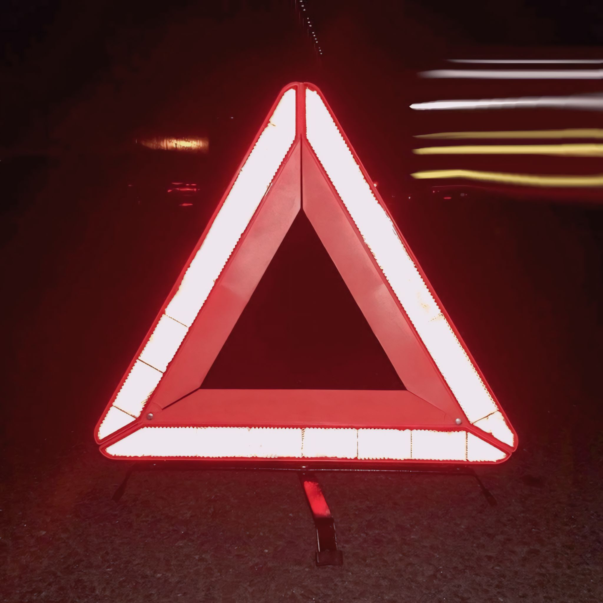 - Segitiga pengaman berwarna merah dan bersifat memantulkan cahaya.